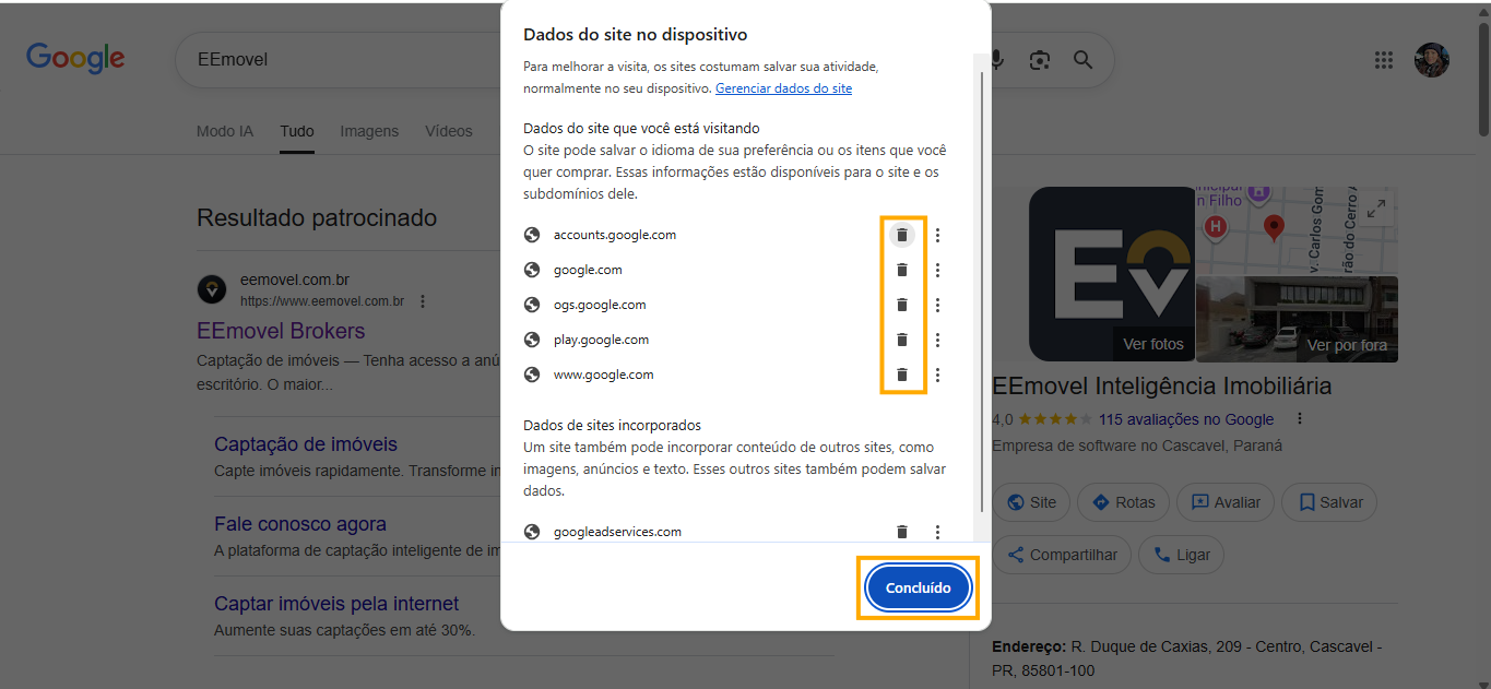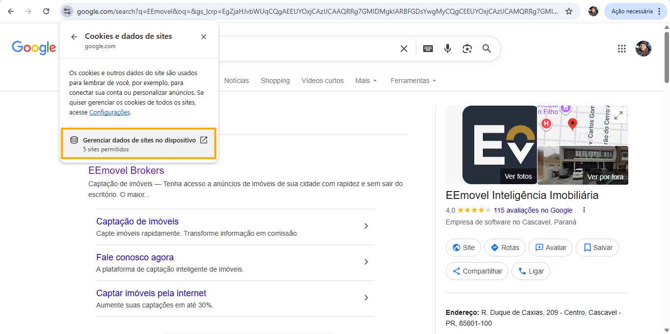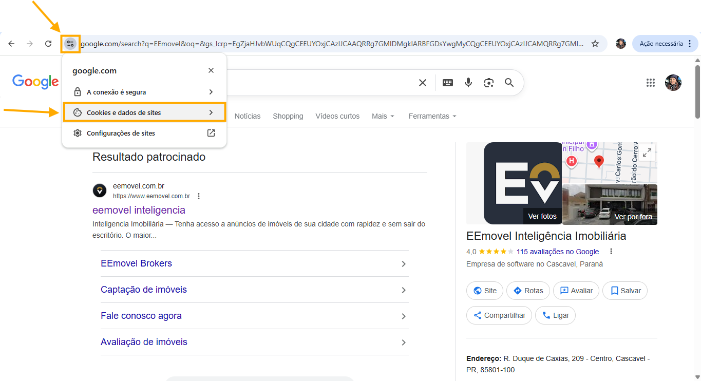 Se você está enfrentando problemas ao acessar a plataforma EEmovel limpar os cookies do navegador pode ajudar a corrigir falhas de carregamento e autenticação.